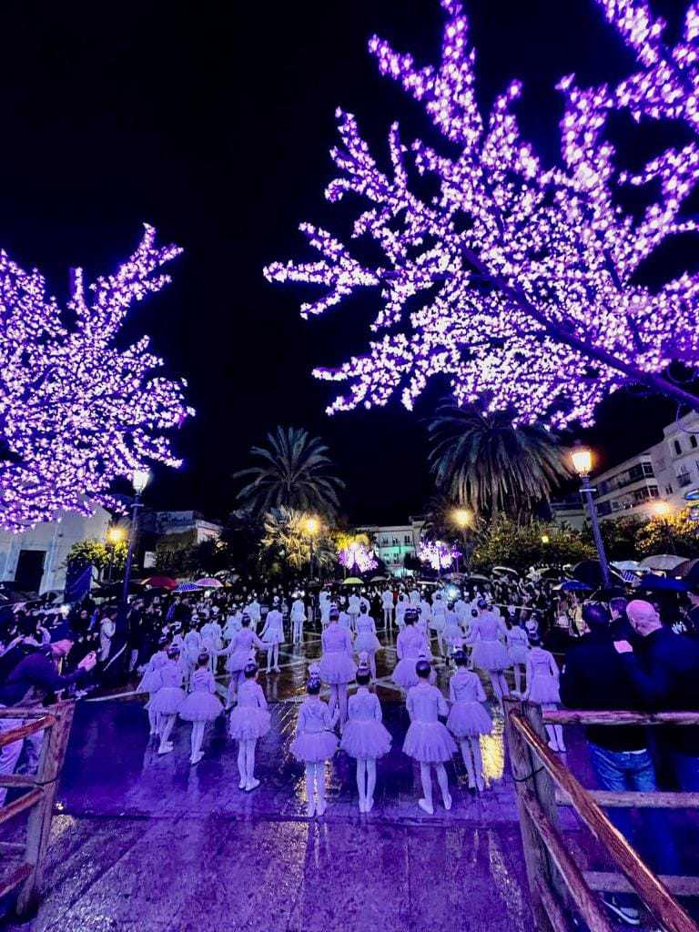 El Puerto de Santa María disfruta ya de su extensa programación de Navidad, que comenzó este viernes –con la lluvia como protagonista de última hora– con el encendido del alumbrado navideño y la Cabalgata de la Estrella de la Ilusión, encarnada este año por Jessica Hevilla Morejón.